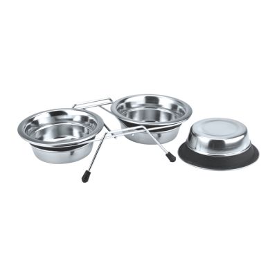 Σετ από δύο ανοξείδωτα μπολ με στιβαρή μεταλλική ανοξείδωτη βάση, σχεδιασμένο για σκύλους μεγαλόσωμων φυλών. Παρέχει άνεση και σταθερότητα κατά τη διάρκεια των γευμάτων.