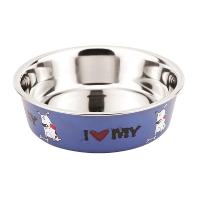 Μπολ ανοξείδωτο με σχέδιο για το νερό ή το φαγητό του σκύλου σας. Το ανοξείδωτο υλικό είναι ανθεκτικό στη σκουριά και καθαρίζεται εύκολα στο χέρι ή το πλυντήριο πιάτων. Επίσης, αν αφαιρέσετε το πλαστικό του μέρος, είναι κατάλληλο και για το φούρνο μικροκυμάτων. Διατίθεται σε διάφορα μεγέθη για να διαλέξετε το κατάλληλο για το σκυλάκι σας.
