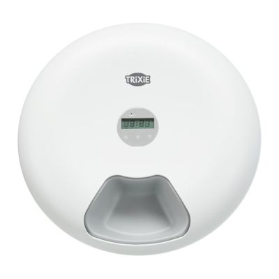 Αυτόματη ηλεκτρονική ταΐστρα για να μπορείτε να προγραμματίσετε τα γεύματα του σκύλου ή της γάτας σας. Μπορείτε να την προγραμματίσετε για έως 6 γεύματα (5 γεύματα ημερησίως), και είναι κατάλληλη και για ξηρή και για υγρή τροφή. Είναι κατασκευασμένη από εξαιρετικά ανθεκτικό υλικό για μακροχρόνια χρήση και οι θήκες τροφής πλένονται στο πλυντήριο πιάτων. Έχει σύστημα ασφαλείας που σταματάει το γύρισμα της θήκης, ώστε να μην υπάρχει περίπτωση ατυχήματος. Λειτουργεί με ρεύμα αλλά και με μπαταρίες σε περίπτωση διακοπής ρεύματος ή για περιστάσεις όπου δεν έχετε πρόσβαση σε παροχή ρεύματος.